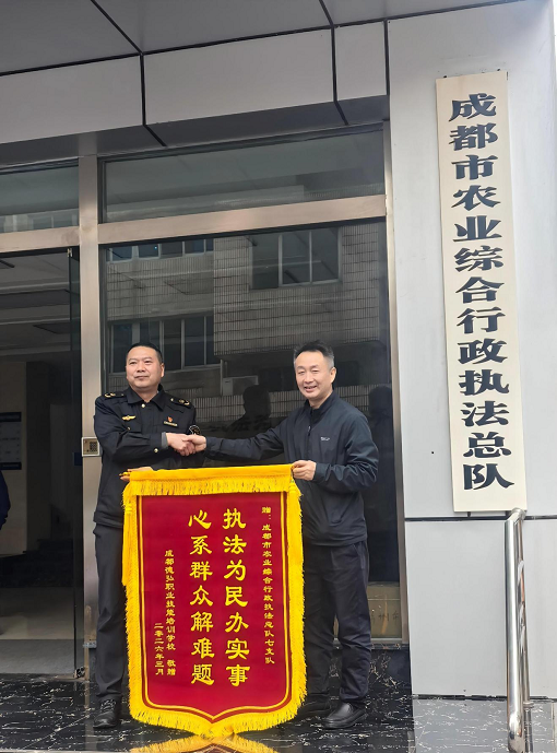 今日,成都德弘职业技能培训学校理事长帅世友一行专程前往成都市农业综合行政执法总队,向总队七支队敬献“心系群众解难题、执法为民办实事”锦旗,对支队在拖拉机和联合收割机驾驶证申考流程中提供的精准指导和暖心服务表示感谢。双方还就农机手培训、农业现代化发展等议题展开深入交流,共绘成都农机人才培养新蓝图。